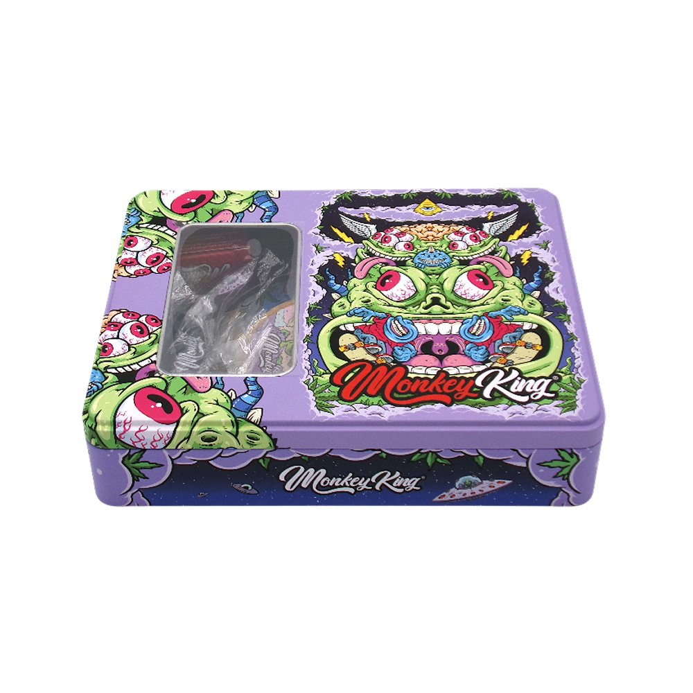 Monkey King Windowed Tin Try Kit Rolling papers+ tips + lighter+ ash tray+grinder offers premium quality and smooth performance.